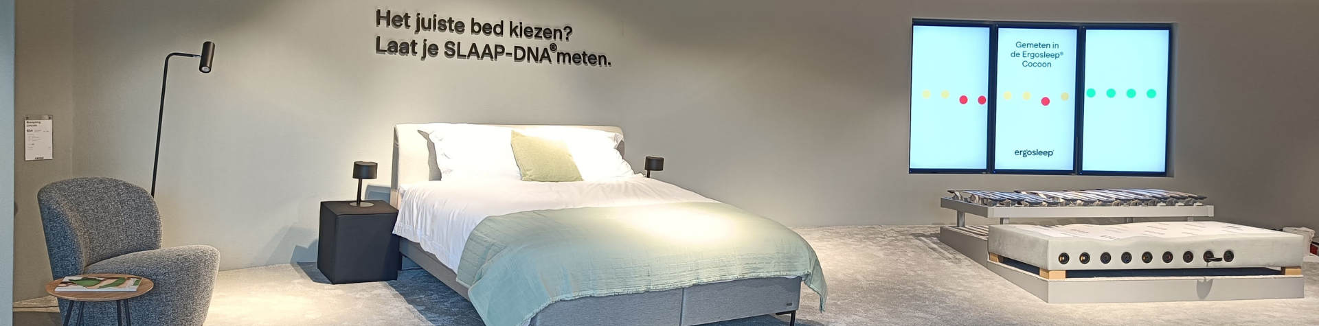 Het juiste bed kiezen? Laat je SLAAP-DNA meten en wees zeker van je keuze. Want goed slapen is geen kwestie van geluk, het is wetenschap. Wil je het Ergosleep®-aanbod bekijken en uitproberen? Bezoek dan Ergosleep Eindhoven. Loop gerust binnen in onze beddenzaak of maak een afspraak voor een persoonlijk advies op maat!